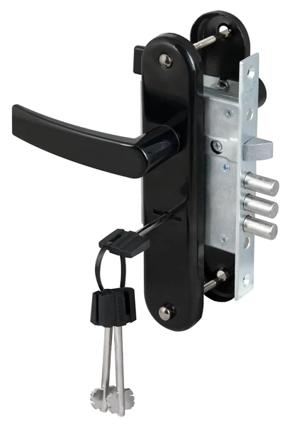 Замок врезной сувальдный с защёлкой в комплекте с ручкой ЗВ9-8/13 (черный муар), 3 кл. /76704/ TL4399