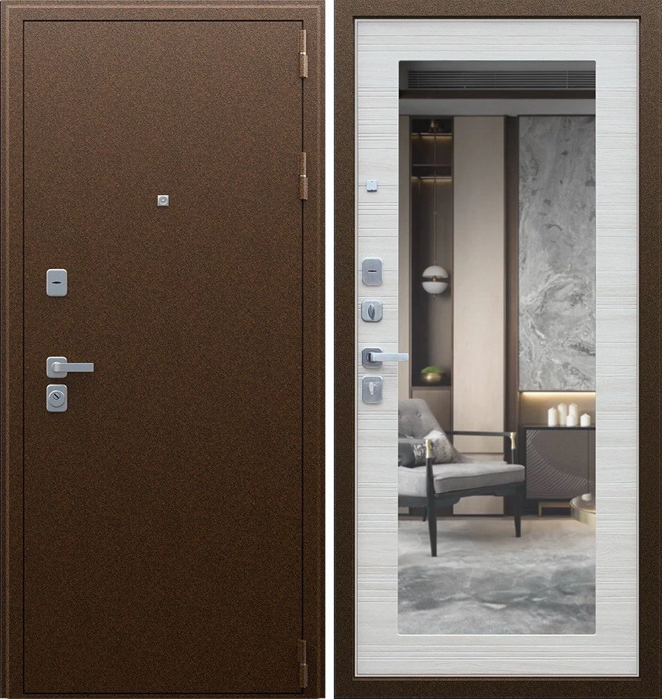 Надежная входная Дверь Спартак с зеркалом Акация Светлая Поперечная премиум класса по цене 36 007 руб. Большая толщина стали защитит от проникновения в ваш дом, квартиру или коттедж. Используется очень качественная фурнитура: замки, цилиндры, ручки, защелки. Покрытие и отделка двери изготовлено под внимательным контролем производителя. Дверь имеет долгий срок службы и гарантию.
