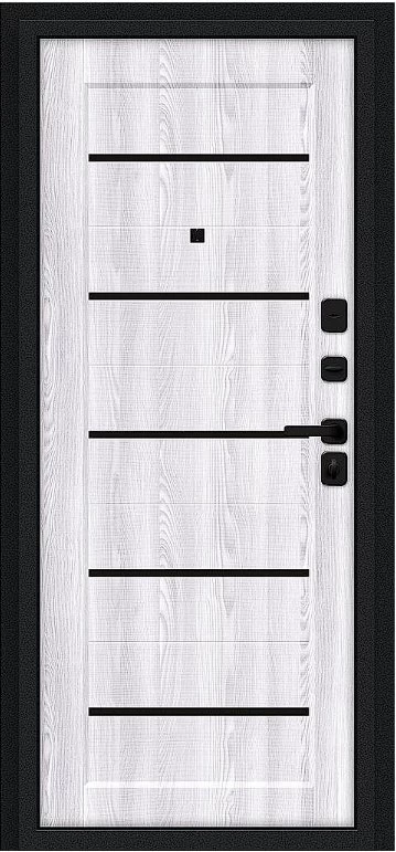 Надежная входная Дверь Браво Борн/SBlack Букле черное/Riviera Ice премиум класса по цене 31 007 руб. Большая толщина стали защитит от проникновения в ваш дом, квартиру или коттедж. Используется очень качественная фурнитура: замки, цилиндры, ручки, защелки. Покрытие и отделка двери изготовлено под внимательным контролем производителя. Дверь имеет долгий срок службы и гарантию.