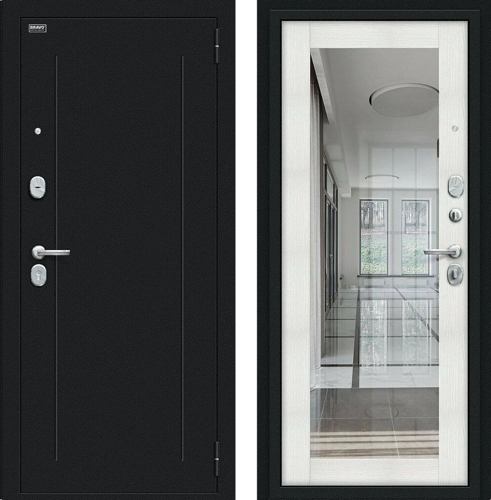 Надежная входная Дверь Браво Флэш Букле черное/Bianco Veralinga премиум класса по цене 32 457 руб. Большая толщина стали защитит от проникновения в ваш дом, квартиру или коттедж. Используется очень качественная фурнитура: замки, цилиндры, ручки, защелки. Покрытие и отделка двери изготовлено под внимательным контролем производителя. Дверь имеет долгий срок службы и гарантию.