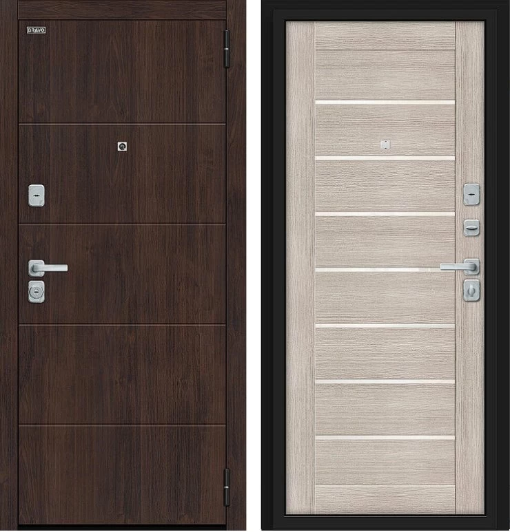 Надежная входная Дверь Браво Прайм/BChrome Almon/Cappuccino Melinga премиум класса по цене 39 357 руб. Большая толщина стали защитит от проникновения в ваш дом, квартиру или коттедж. Используется очень качественная фурнитура: замки, цилиндры, ручки, защелки. Покрытие и отделка двери изготовлено под внимательным контролем производителя. Дверь имеет долгий срок службы и гарантию.