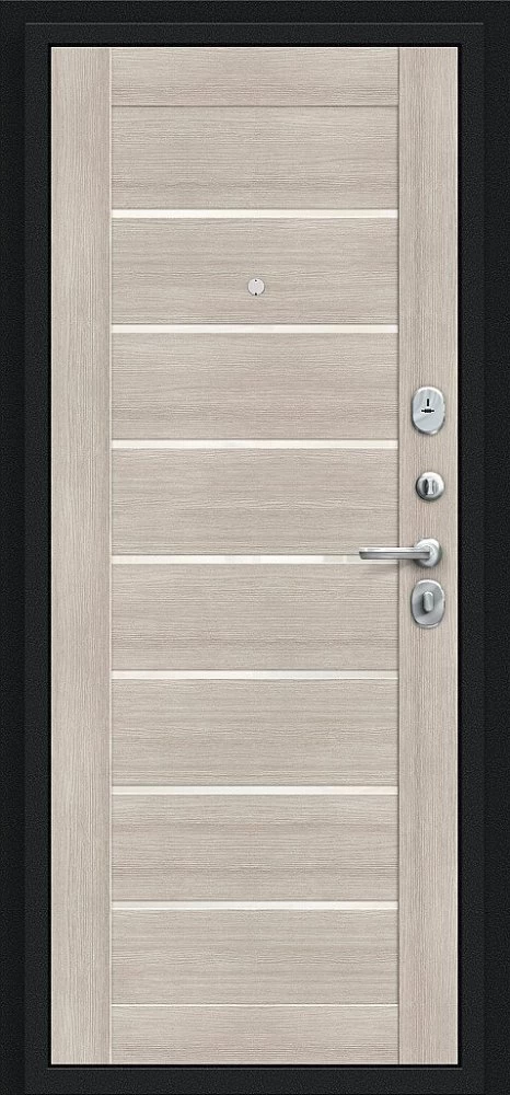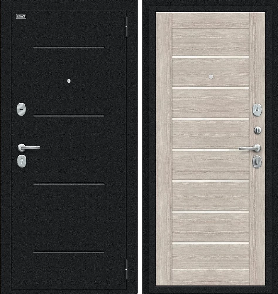 Надежная входная Дверь Браво Техно Букле черное/Cappuccino Veralinga премиум класса по цене 30 857 руб. Большая толщина стали защитит от проникновения в ваш дом, квартиру или коттедж. Используется очень качественная фурнитура: замки, цилиндры, ручки, защелки. Покрытие и отделка двери изготовлено под внимательным контролем производителя. Дверь имеет долгий срок службы и гарантию.