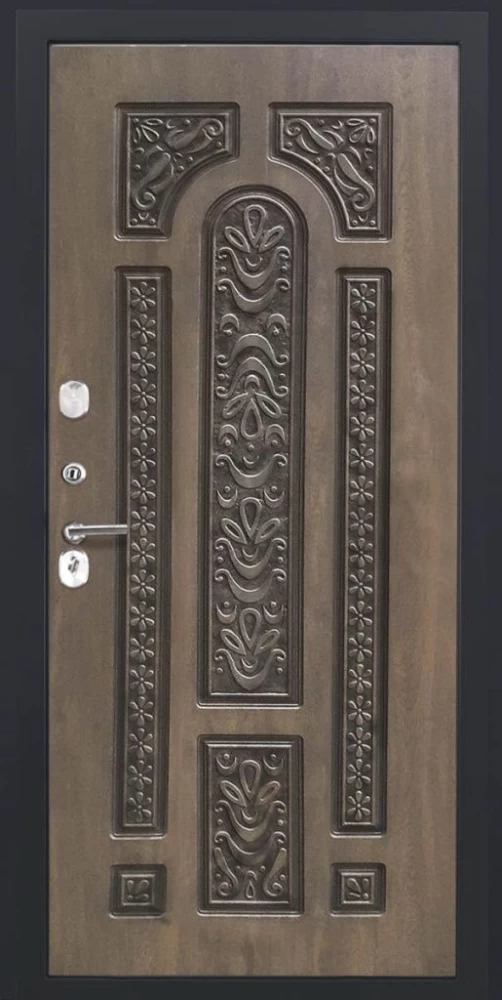 Дизайнерская входная Входная дверь ДвериПРО L-43 Д-19 (16мм, Грецкий орех + черная патина винорит) DPRO195587 класса Люкс с несколькими листами стали, звукоизоляцией и теплоизоляцией. Утепленный короб и полотно защитят от сквозняков и шумов. Модель не только надежная, комфортная, защищенная и высочайшего качества, но и очень красивая! Будет отлично сочетаться с интерьером дома, квартиры или офиса. Сейчас действует выгодное предложение по цене: 78 330 руб.