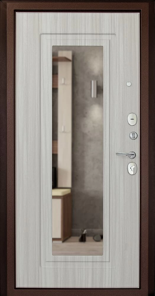 Надежная входная Дверь ДК Рубикон зеркало премиум класса по цене 31 857 руб. Большая толщина стали защитит от проникновения в ваш дом, квартиру или коттедж. Используется очень качественная фурнитура: замки, цилиндры, ручки, защелки. Покрытие и отделка двери изготовлено под внимательным контролем производителя. Дверь имеет долгий срок службы и гарантию.