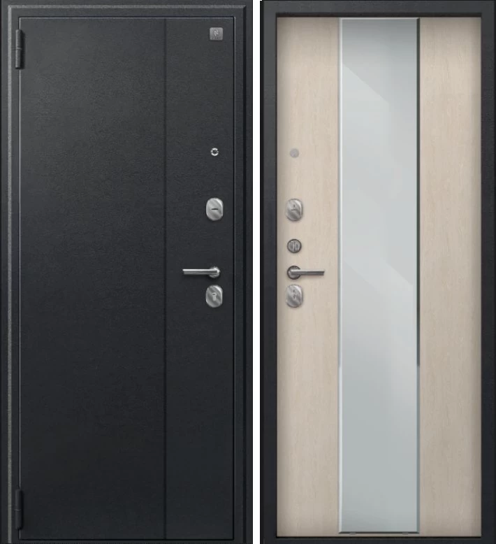 Надежная входная Дверь A-04 черный сатин - седой дуб зеркало премиум класса по цене 33 607 руб. Большая толщина стали защитит от проникновения в ваш дом, квартиру или коттедж. Используется очень качественная фурнитура: замки, цилиндры, ручки, защелки. Покрытие и отделка двери изготовлено под внимательным контролем производителя. Дверь имеет долгий срок службы и гарантию.