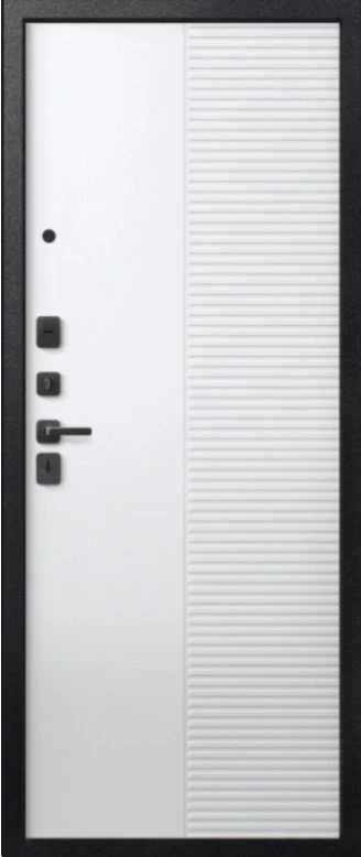 Надежная входная Дверь V-18 Черный муар + Кашемир графит - Кашемир Белый премиум класса по цене 46 257 руб. Большая толщина стали защитит от проникновения в ваш дом, квартиру или коттедж. Используется очень качественная фурнитура: замки, цилиндры, ручки, защелки. Покрытие и отделка двери изготовлено под внимательным контролем производителя. Дверь имеет долгий срок службы и гарантию.