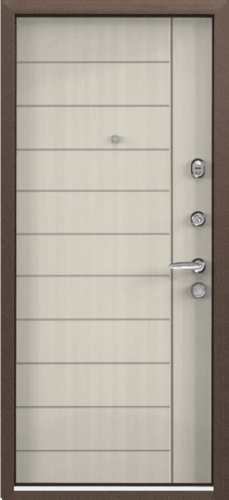 Надежная входная Дверь Цербер 3К(Чёрная) Горизонт Латте(Сменная панель) премиум класса по цене 42 007 руб. Большая толщина стали защитит от проникновения в ваш дом, квартиру или коттедж. Используется очень качественная фурнитура: замки, цилиндры, ручки, защелки. Покрытие и отделка двери изготовлено под внимательным контролем производителя. Дверь имеет долгий срок службы и гарантию.